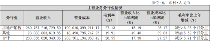 据悉,2021年公司主营业务毛利率为26.55%,同比减少5.71个百分点;其中房地产销售毛利率同比减少6.35个百分点。