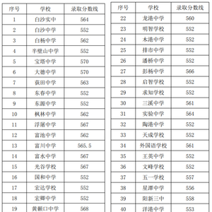 2、提前批次大冶一中招生计划的40%分配到校资格线如下:实验中学、东岳中学、尹家湖中学、东风路学校、还地桥中心学校、华中学校、聚龙外国语学校为570.50 分;罗桥街办中心学校为569分;金山店镇中心学校、保安镇中心学校为568.25分;刘仁八镇中心学校为566.25分;其它市直中学及乡镇中心学校均为564.25分。