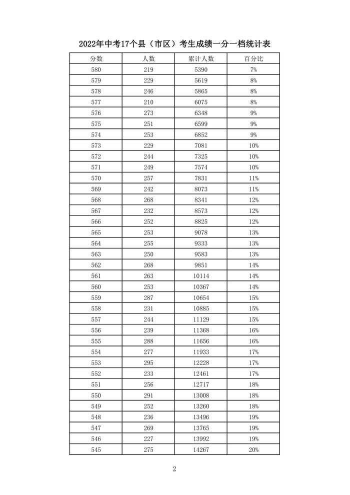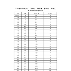 2022年中考一分一档表出炉