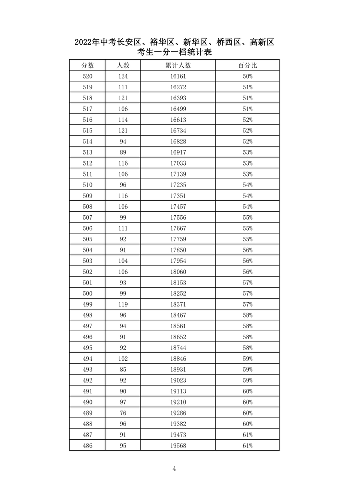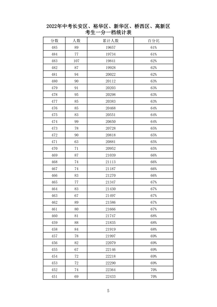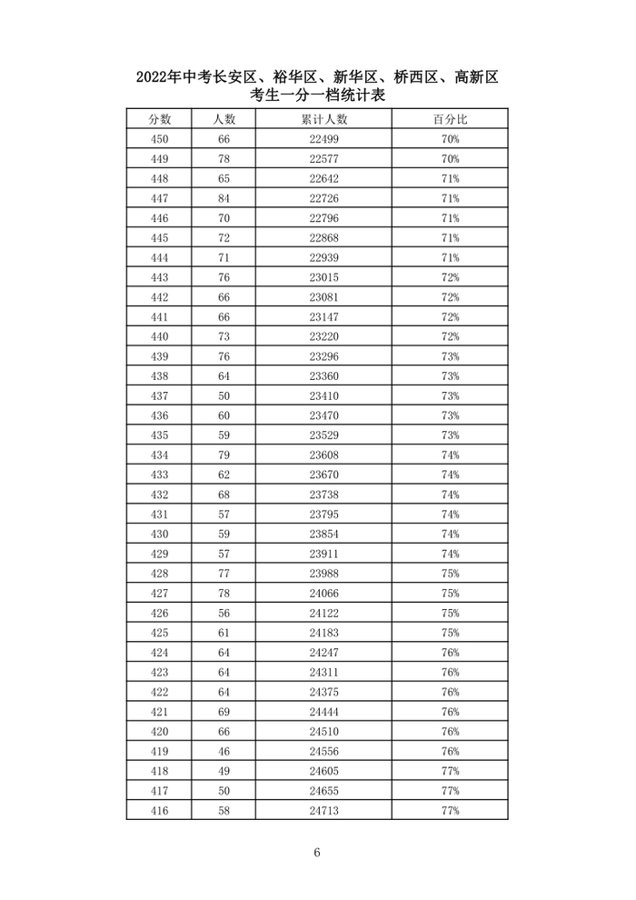 石家庄市中考2022年(含优惠)一分一档统计表(市)