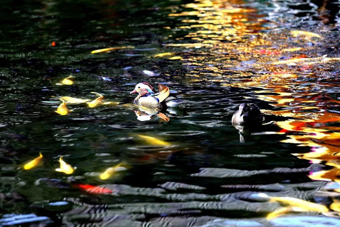 好多摄影爱好者扛着“长枪短炮”,灵动的水鸟、娇艳的鲜花便是他们的目标。而园中清澈的水源,就是鱼儿们的天堂。