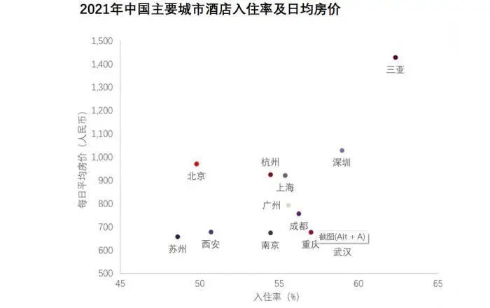 此外,据仲量联行《中国酒店市场2021年回顾及2022年展望》报告显示,2021年,三亚以超过60%的酒店入住率和约1400元的日均房价,远超深圳、上海、杭州、北京等城市。