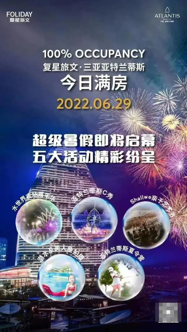 不过,三亚亚特兰蒂斯酒店的工作人员6月30日向《华夏时报》记者透露,“这两天满房主要是因为我们6月初有推出一些套餐,而这些房券最晚使用日期是6月30日,所以我们6月底的房间就会相对比较紧张。”