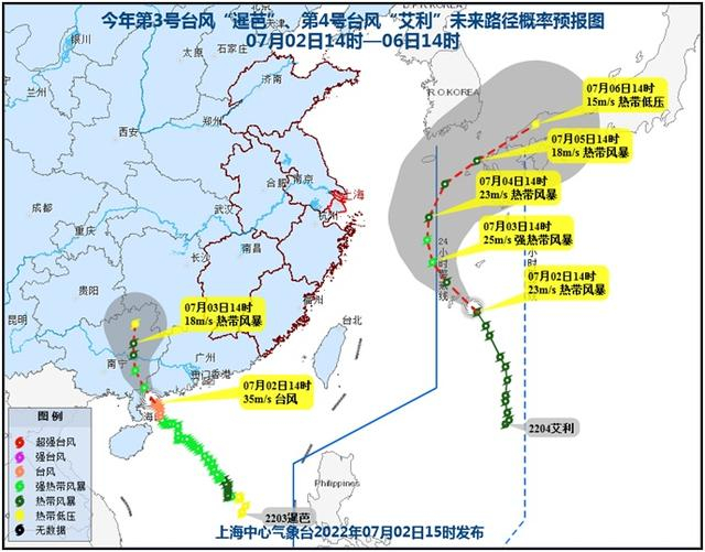 今年第4号台风“艾利”今日夜间移入东海,4日白天越过上海同纬度(距离上海以东约450公里)。后期趋向日本西部沿海,对我国东海中东部海域有较大风雨影响,对本市陆地及近海海域无明显影响。