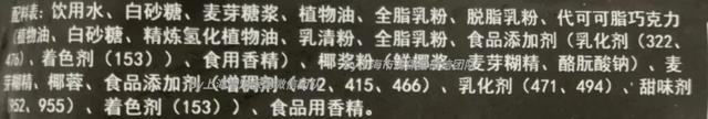 奥雪椰子灰(巧克力椰子口味)雪糕中也含有氢化植物油