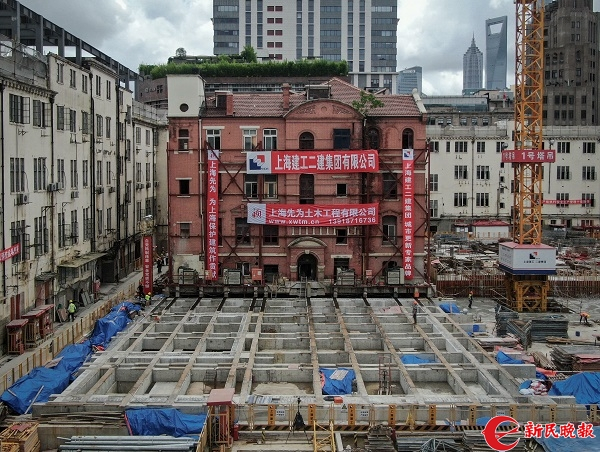 施工总承包方上海建工二建集团项目负责人周善告诉记者,根据项目整体规划,“小红楼”作为历史保留建筑采用外墙修缮、内部换胆的方式进行改建。同时,为兼顾项目地下空间开发,项目地块内要新建18.2米三层地下空间,用于停车和展览,所以需将重达3800吨的“小红楼”先平移至基坑临时栈桥上方,待原址地下结构施工完成后再“挪”回原位。