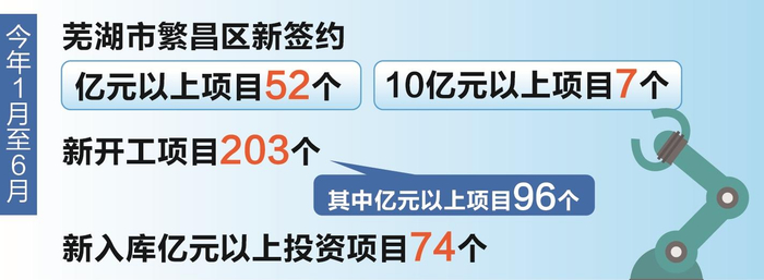 栽好“梧桐树”,引来“金凤凰”。今年以来,繁昌区新签约亿元以上项目52个、10亿元以上项目7个;新开工项目203个,其中亿元以上项目96个。新入库亿元以上投资项目74个。(记者 沈宫石