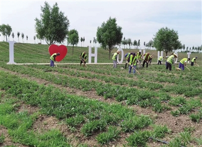 本报讯(记者 宋向华)6月27日,记者在大黑河郊野公园东段、北岸的马鞭草花田看到大片的马鞭草长势喜人,有的已开花,淡紫色的花朵点缀其间,甚是好看。不远处,园林工人正在一点点清理杂草,促马鞭草茁壮成长,达到预期效果(见图)。