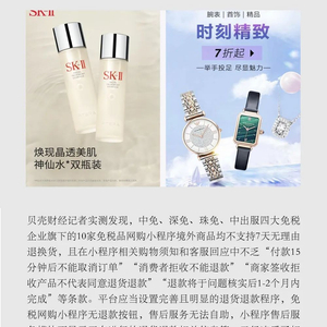 在退换货条款标识方面,除“cdf会员购北京”外,其余小程序均未在商品详情界面显著位置处标注“不支持7天无理由退换货”。在上述三位消费者提及的两个免税品网购小程序中,贝壳财经记者发现,“cdf会员购海南”、“cdf海南免税(官方商城)”和“CNSC会员购”3家商品详情页面无任何“不支持7天无理由退换货”等标识;而“中免日上”、“cdf会员购广州”和“珠海免税MAlL”3家虽然有相关标识,但需要拉到商品详情界面最底部方可看到;其余3家则在商品“服务”一栏标注。