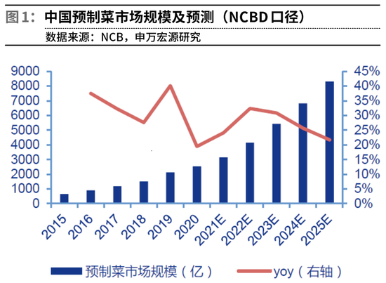 B端:参考近10年(2011-2021年)社零餐饮收入CAGR约6.9%,假定2021-2025年餐饮收入CAGR为4.5%,对应2025年餐饮收入规模4.7万亿元;假定餐饮端原材料成本占比不变,对应食材采购规模1.9万亿元;假设B端预制菜采购金额占原材料采购金额比例提升至25%,对应B端预制菜消费规模为4747亿元,2021-2025年CAGR约23%。
