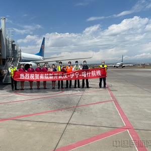 中国民航网 通讯员褚文婷、刘丹晨子 报道:7月1日,由南方航空有限公司执飞的B737机型飞机和由重庆航空有限公司执飞的空客A320机型飞机降落在伊宁机场,标志着南方航空有限公司武汉—伊宁—喀什、重庆航空有限公司重庆—喀什—伊宁两条航线首航成功。机坪上,伊宁机场领导向航空机组人员献上鲜花,赠送了独具伊犁特色的伴手礼,随后举行了简短而隆重的首航庆祝仪式。