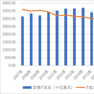 图1 全球IT支出及占全球GDP比重数据来源:全球IT支出来源于Gartner,全球GDP来源于世界银行