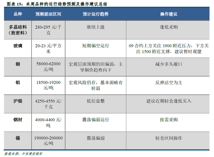 行情展望:宏观风险仍存,基本面略有转弱。预计07合约下周波动区间18500-19200元/吨,操作上建议反弹沽空为主。