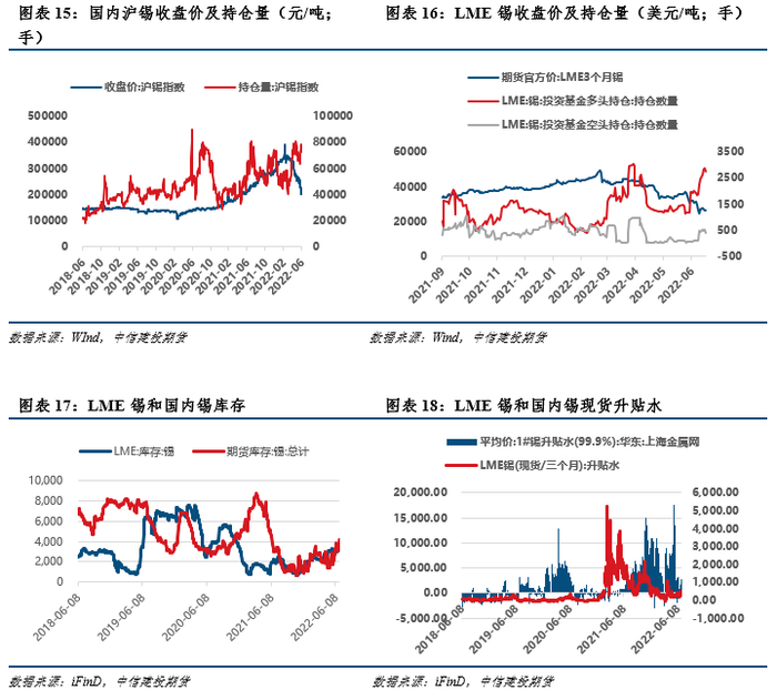 市场分析:本周沪锡偏弱震荡。宏观方面,海外宏观走势仍然偏悲观,但通胀压力下欧美偏向加速收紧货币,LME锡承压运行,对内盘形成一定压制。供应方面,云南锡矿加工费持续回升,5月国内精锡总产量1.66万吨,环比增长11.6%,进口方面,海关数据显示5月精锡进口量达到5521吨,环比增长68.3%,虽有冶炼厂发布停产公告,但是对价格提振不明显。需求方面目前依然存在分化,光伏行业保持高增速,但消费电子等交投较为冷清,出口方面,印尼政府将在6月审查出口许可证,或对精锡出口造成影响。库存方面,上期所和LME库存目前都处于历史高位,虽然沪锡近期存在一定去库,但是幅度较小,对价格提振有限。总的来说,沪锡目前仍处于供过于求的状态,市场交易重点在于需求疲软,而非冶炼厂停产和去库存。