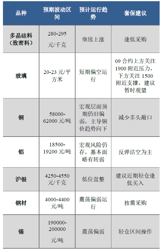 二、光伏产业原材料价格周度展望
