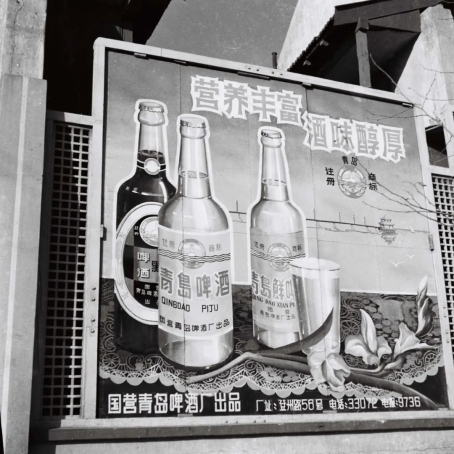 上世纪五十年代青岛啤酒的手绘广告牌。逄淑才收藏