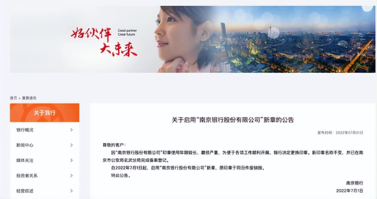 暂且一停。因为南京银行在7月1日还发生了一件事: 因旧章使用年限较长、磨损严重,南京银行公告称即日起将启用新章。