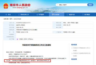 还值得注意的是,同在6月29日这一天,南京市人民代表大会常务委员会发布决定任命名单,决定任命邓智毅为南京市人民政府副市长(挂职)。公开资料显示,邓智毅还是中国东方资产管理股份有限公司(简称“东方资产”)的党委副书记、执行董事、总裁。