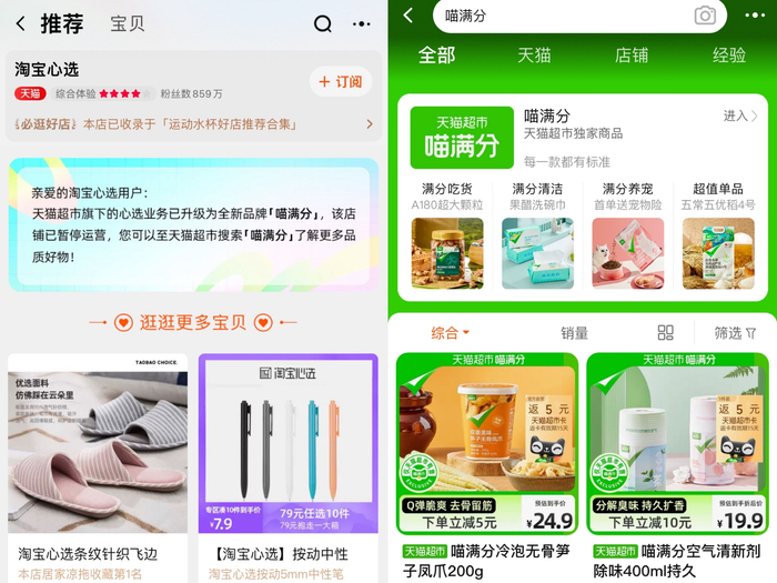 近日,阿里旗下自营生活方式品牌——淘宝心选官方旗舰店发布公告,正式宣布店铺已暂停运营。心选业务已升级为天猫超市旗下全新品牌“喵满分”,聚焦于用户家庭生活场景的各项消费需求。