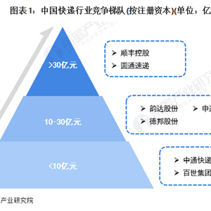快递业是现代服务业的重要组成部分,是推动流通方式转型、促进消费升级的现代化先导性产业。快递行业依据企业的注册资本划分,可分为3个竞争梯队。其中,注册资本大于30亿元的企业有顺丰控股、圆通速递;注册资本在10-30亿元之间的企业有:韵达股份、申通快递、德邦股份;其余企业的注册资本在10亿元以下。