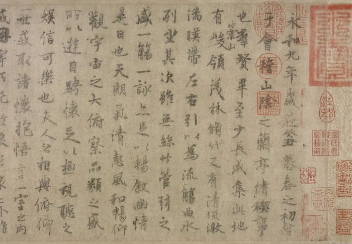 清代刻入“兰亭八柱”,并被列为第一的虞世南行书摹兰亭序卷。