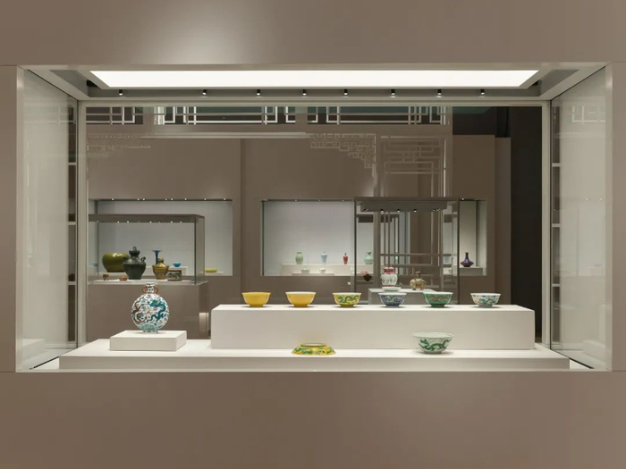另外三个专题展览“凝土为器:故宫博物院珍藏陶瓷”“龙颜凤姿:清代帝后肖像”“器惟求新:当代设计对话古代工艺”(展厅3、4和5)分别聚焦陶瓷、清代帝后画像和工艺珍宝。
