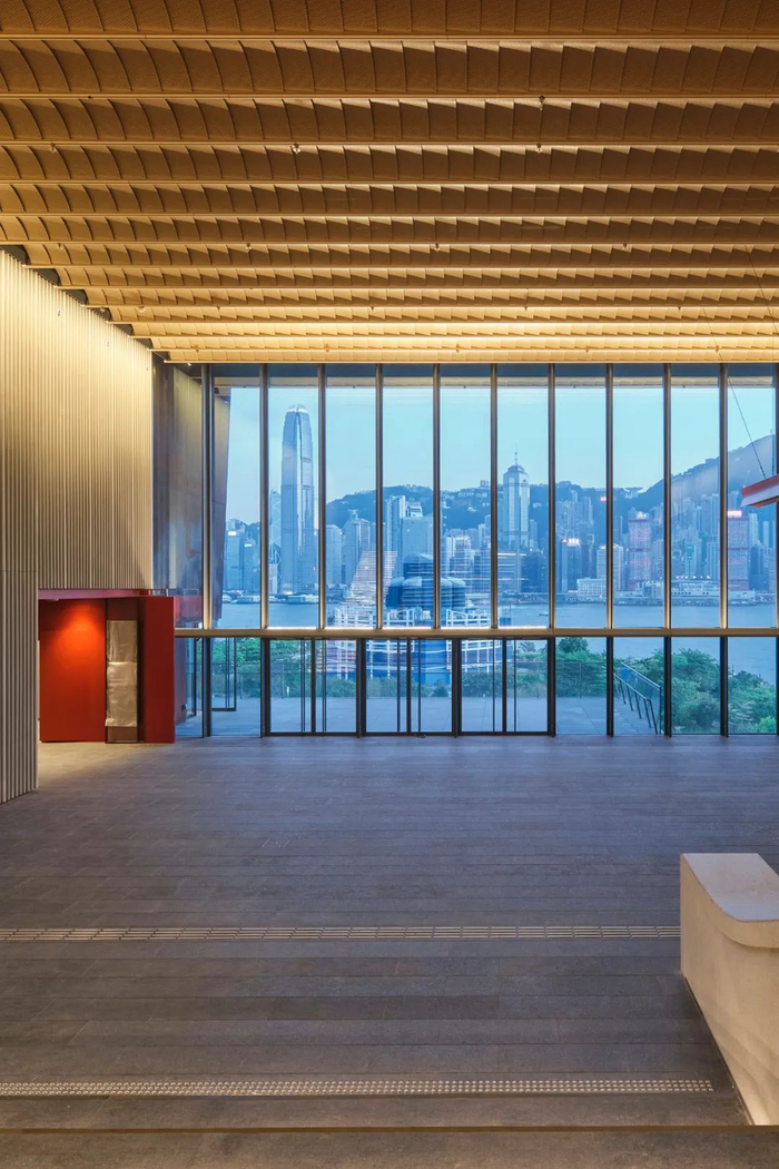 三个中庭与户外空间相连,让观众在欣赏文物展品之余,饱览西九文化区、香港岛的天际线以至大屿山的亮丽景致。