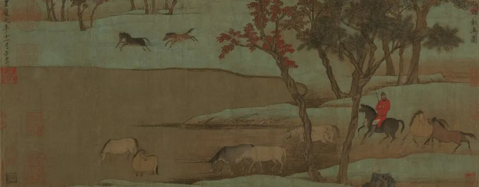 赵孟頫晚年代表作秋郊饮马图。