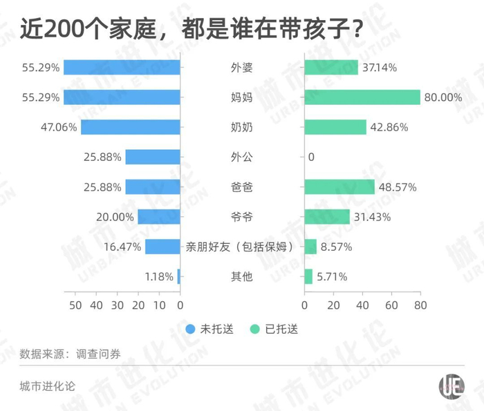 不过既然做了问卷调查,对比已送托和未送托家庭,城叔也发现了一些有趣的变化。