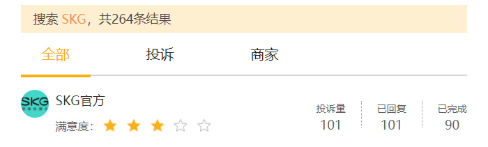 黑猫投诉平台显示,SKG产品续航问题、损坏维修问题、虚假宣传问题、退换货以及致人烫伤等投诉时有出现。