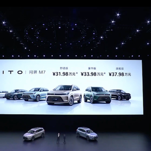 问界M7售价为31.98万-37.98万元,搭载HUAWEI DriveONE纯电驱增程平台、AITO零重力座椅和全新升级的HarmonyOS智能座舱、6座大空间等。