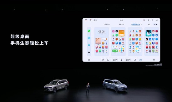 问界M7新增了超级桌面功能,手机可以直达车机,这意味着车主可以利用车机大屏操作手机应用,比如一键将微信分享的地址同步到车机上、编辑微信文档、调用车载摄像头拍摄手机Vlog等。手机上几千个App都可以无缝流转到车上,余承东将其形容为“没有一家做得到”。