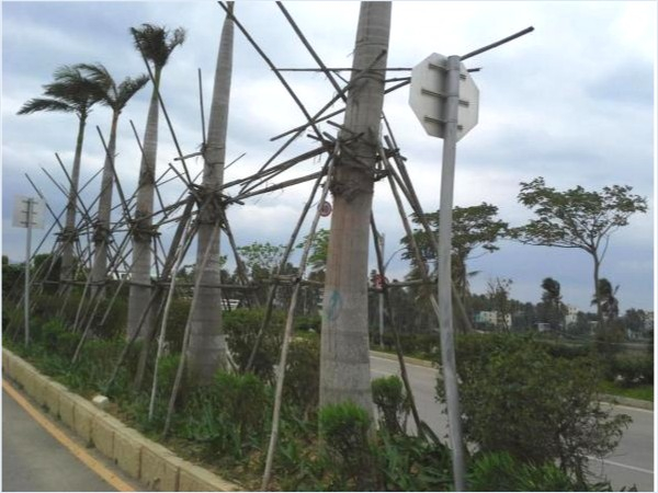 移栽树即使成活几年后,抗风能力依然很弱。