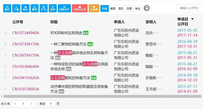 从国内专利布局上看,以“芬戈莫德”为全文关键词,笔者检索到以上6件专利。其中,2件芬戈莫德组合物专利、1件涉及晶型与制备方法的专利已被驳回。