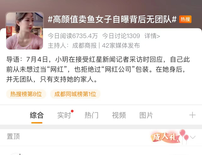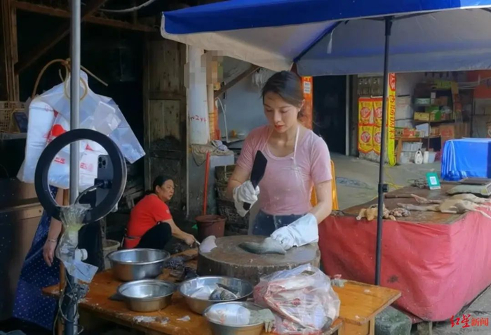 女子卖鱼因超高颜值爆火!当事人否认背后有团队,会考虑带货
