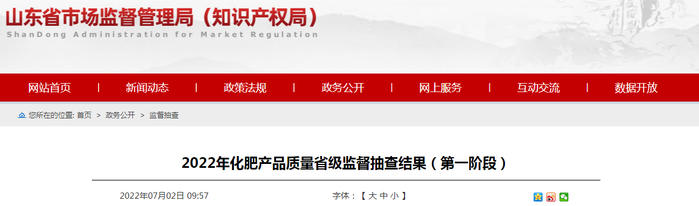 山东省市场监管局发布2022年化肥产品质量省级监督抽查结果(第一阶段)