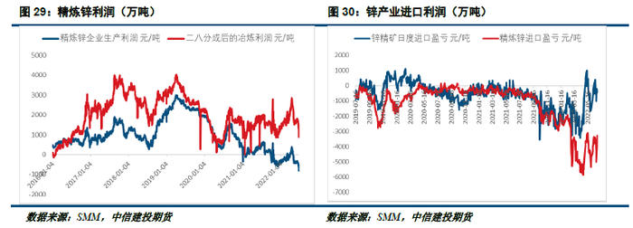 由于上半年精矿供应整体偏紧,导致加工费下滑明显,同时由于精锭价格维持在相对高位,因此矿山生产利润情况较好。这也在一定程度上促进了后期矿山的增产意愿,预计下半年整体精矿产出将有所增加。同时,在锌精矿市场,随着国内外价差有所修复,海外TC价格大幅提升,海外矿的进口也填补了部分国内的空缺,这也对国内精矿的供应紧张起到了一定的缓解作用。