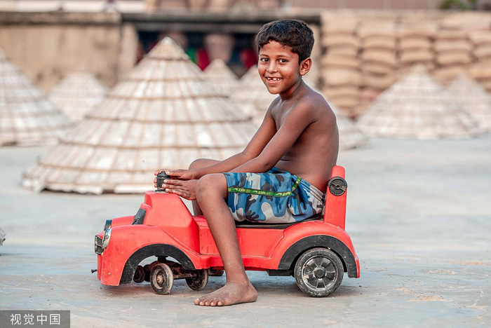 孟加拉婆罗门巴里亚,孩子们在父母工作的碾米厂玩耍。Rakibul Alam Khan/Solent News/视觉中国