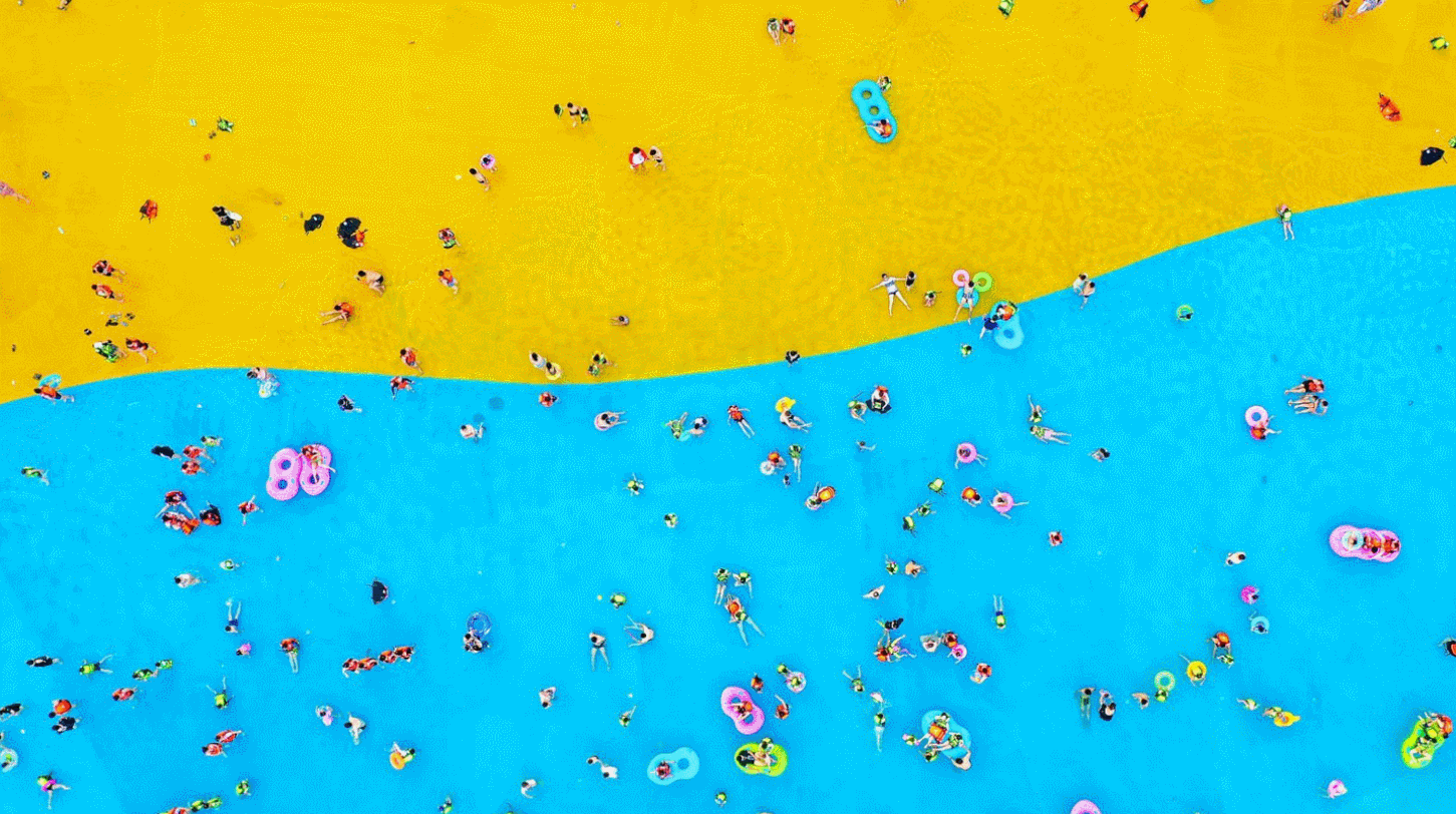 2022年7月4日,浙江湖州长兴县,太湖龙之梦乐园嬉水世界内,市民们玩水、消暑、享清凉。吴拯/视觉中国