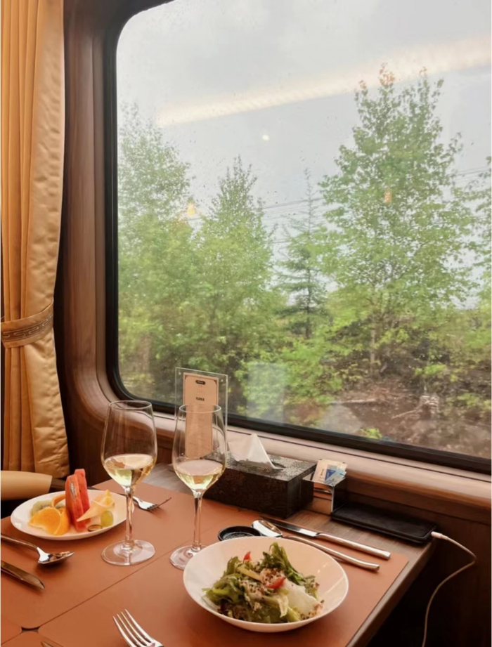 “目前很多人出不了国,这种轻奢的火车旅游体验很稀缺,价格也比国外的列车旅游便宜。”张晓感叹,比自驾游或包车游玩呼伦贝尔有趣得多。