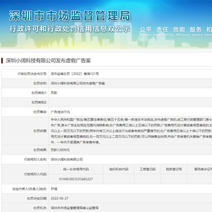 中国网财经7月6日讯(记者 钟文鑫) 深圳市市场监督管理局网站消息,深圳小阔科技有限公司因发布虚假广告被罚1.28万元。