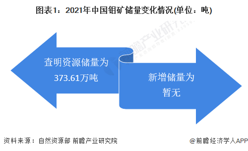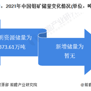 根据自然资源部的统计数据,目前中国钼矿储量较为稳定,查明资源储量为373.61万吨,目前尚无新钼矿被勘测发现。