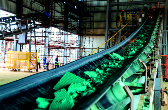 2018年2月,刚果(金)的一处工厂内,传送带转运原钴进行提炼。电动车的大规模生产让钴成为加丹加地区新的财富热点。图/法新