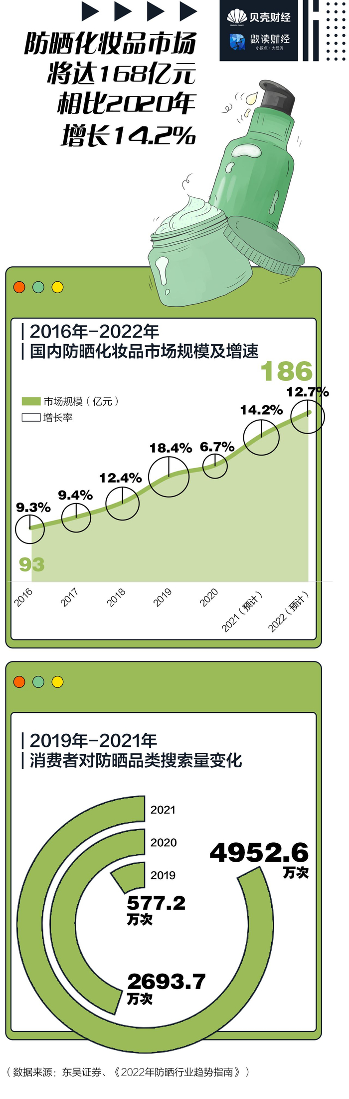 随着国内化妆品市场的持续增长,国产品牌迎来发展契机。广发证券研究显示,中国防晒化妆品市场正处于快速上升通道,新趋势推动着市场格局加速变迁,兼具研发实力和市场敏锐度的国货品牌有望实现超赶。