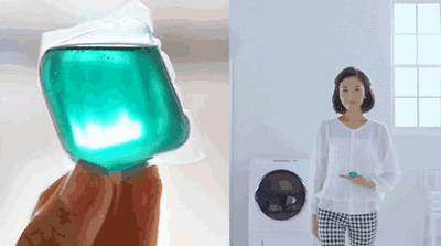 平时洗衣服,丢一颗进洗衣机,按下开关,等待出炉,之后就能get一桶“新衣服”啦~