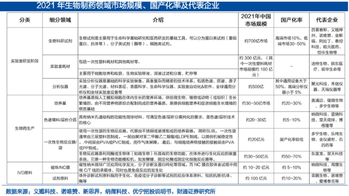 而突如其来的新冠疫情,不仅进一步加快了生物药企原材料国产化的节奏,也进一步凸显了生物医药行业的重要性,国内市场对生物医药的关注度再次得到提升。到2021年时,包括生物科研试剂、培养基等设备领域高端市场国产化率水平都达到了10%-20%。