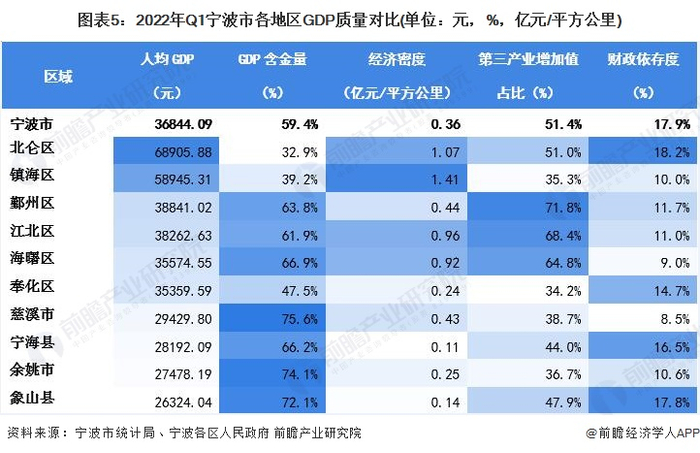 ——镇海区经济密度最大、象山区GDP含金量最高