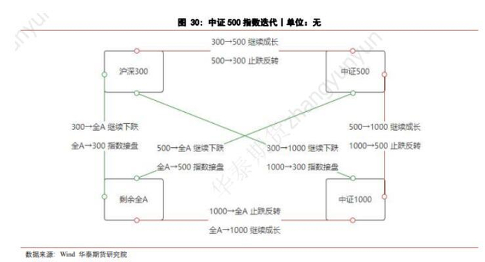 根据我们统计,不同的纳入剔除路径,平均表现出现较大差别。从全A直接升入300以及从300直接降级到全A,跳过500阶段的这两个路径的这些股票,平均来看后续走势都远跑输指数;而从全A升级到500,再从500升级到300的这些股票,平均来看后续走势都远跑赢指数。