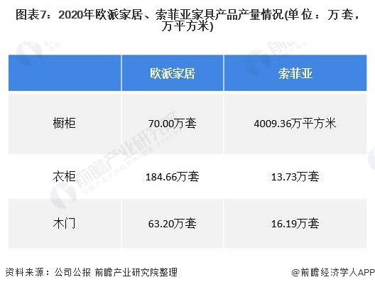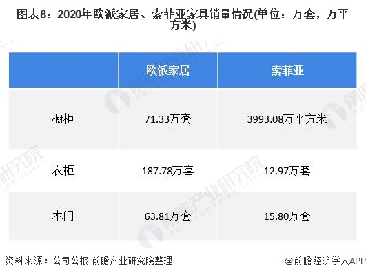 索菲亚2020年橱柜销量3993.08万平方米,衣柜销量12.97万套,木门销量15.80万套。整体来看,欧派家居家具产品业务规模更大。