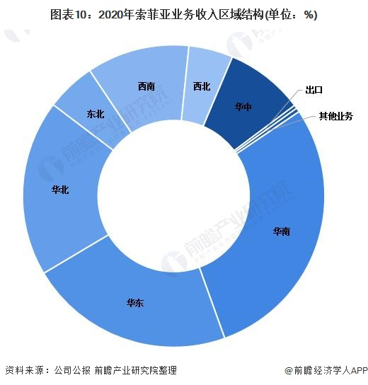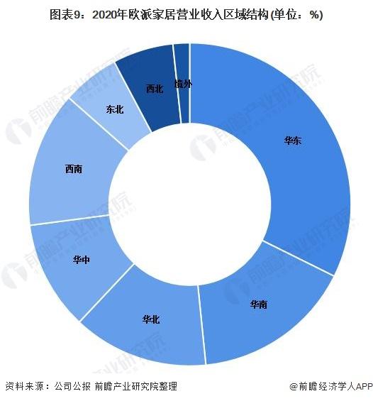 经过十多年的快速发展,在中国东南西北中建成了七大制造基地,完成全国的工业布局。从索菲亚区域收入结构来看,华南、华东和华北为公司的主要销售市场。2020年公司华南收入占比28.95%;华东收入占比21.96%;华北收入占比18.86%。